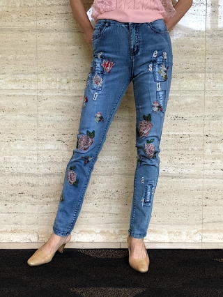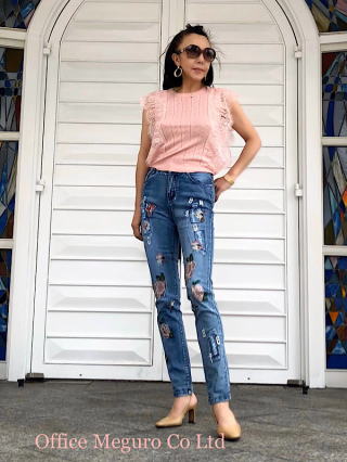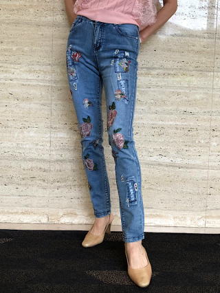 華やかなお刺繍とビジュウ付きの大人の女性びお勧めのファッションジーンズです