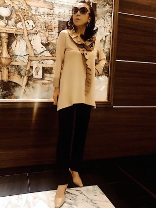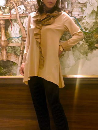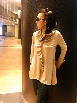 オールシーズン活躍のフラワーコサージュロングブラウスのご紹介です