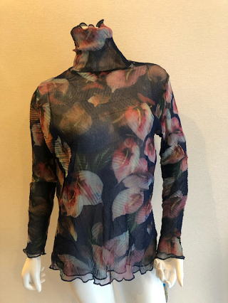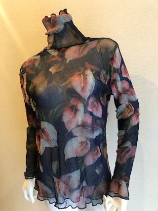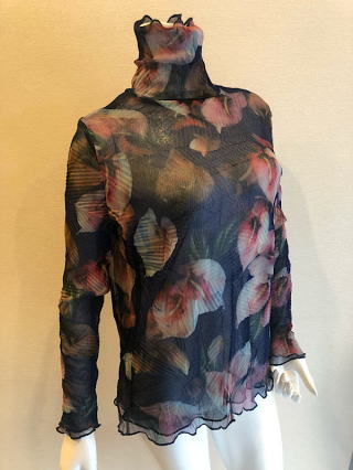ハンドメイドプリーツ加工&リバーシブルインナーNAVYフラワープリント