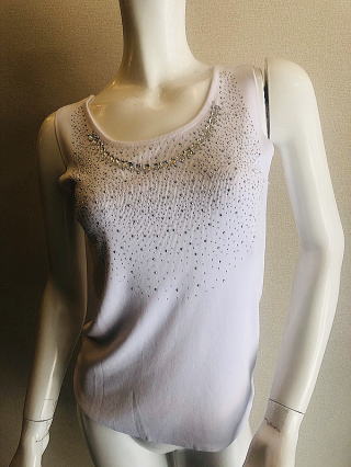 | ビスコース100%ビジュー付きラグジュワリーインナーWHITE |