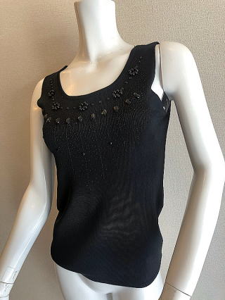 | ビスコース100%ビジュー付きラグジュワリーインナーBLACK |