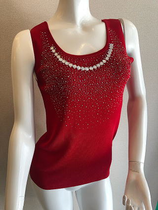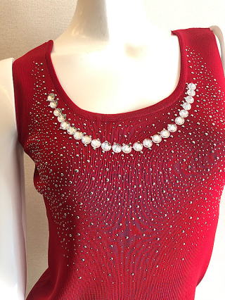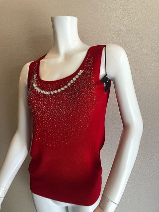 | ビスコース100%ビジュー付きラグジュワリーインナーRED |