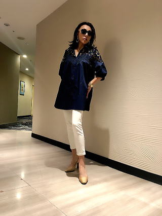 NAVYカラーのレースシャツブラウス&ジャケットです。