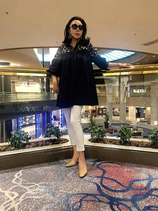 胸元は透けないように胸あてもつき、安心してご着用になれますね♪春から秋にかけて活躍するマダムシャツブラウス&ジャケットスタイルです |